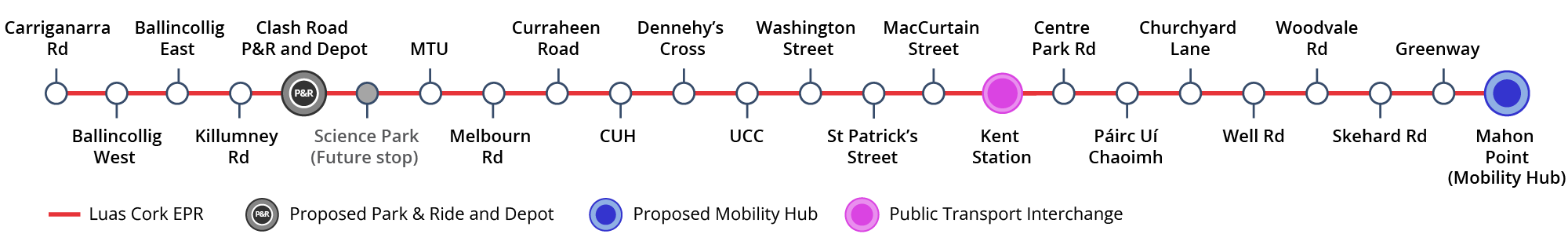 Luas Cork is a proposed light rail line running from Ballincollig to Mahon Point, connecting key destinations such as Munster TechnologicalUniversity, Cork University Hospital, University College Cork, the city centre, Kent Station, theDocklands, Páirc Uí Chaoimh, Blackrock and Mahon.